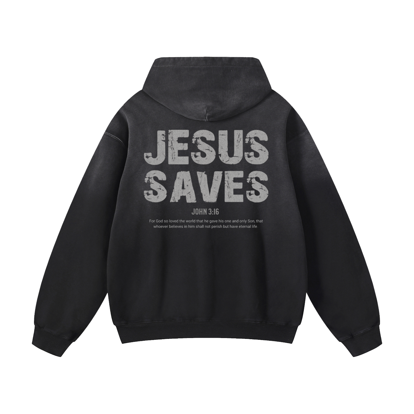Jesus Saves — Snow Washed Oversized Cotton Hoodie