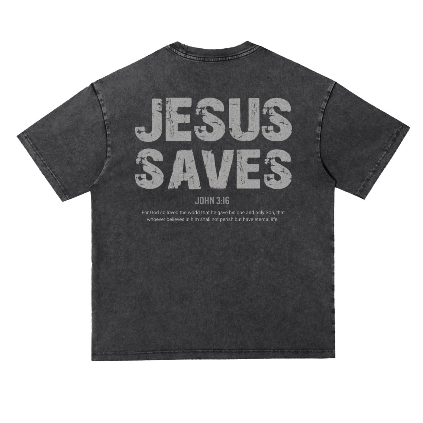 Jesus Saves — Snow Washed Heavyweight Oversized Tee